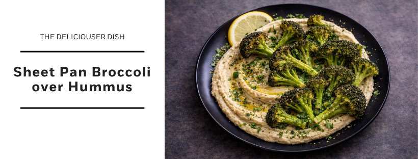 Pile the warm roasted broccoli over the hummus and squeeze lemon juice over the top.